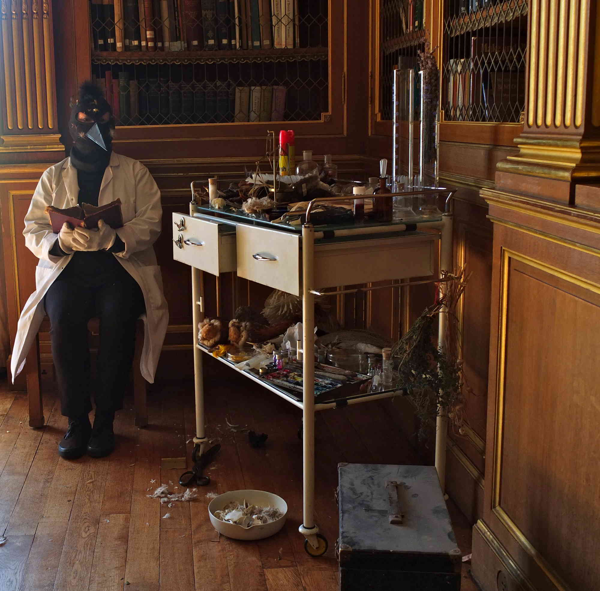 A tableau vivant staged in the library of West Dean House, originally the home of Edward James, patron and collector of the work of Surrealist artists Salvador Dali, Rene Magritte, Leonora Carrington and many others.