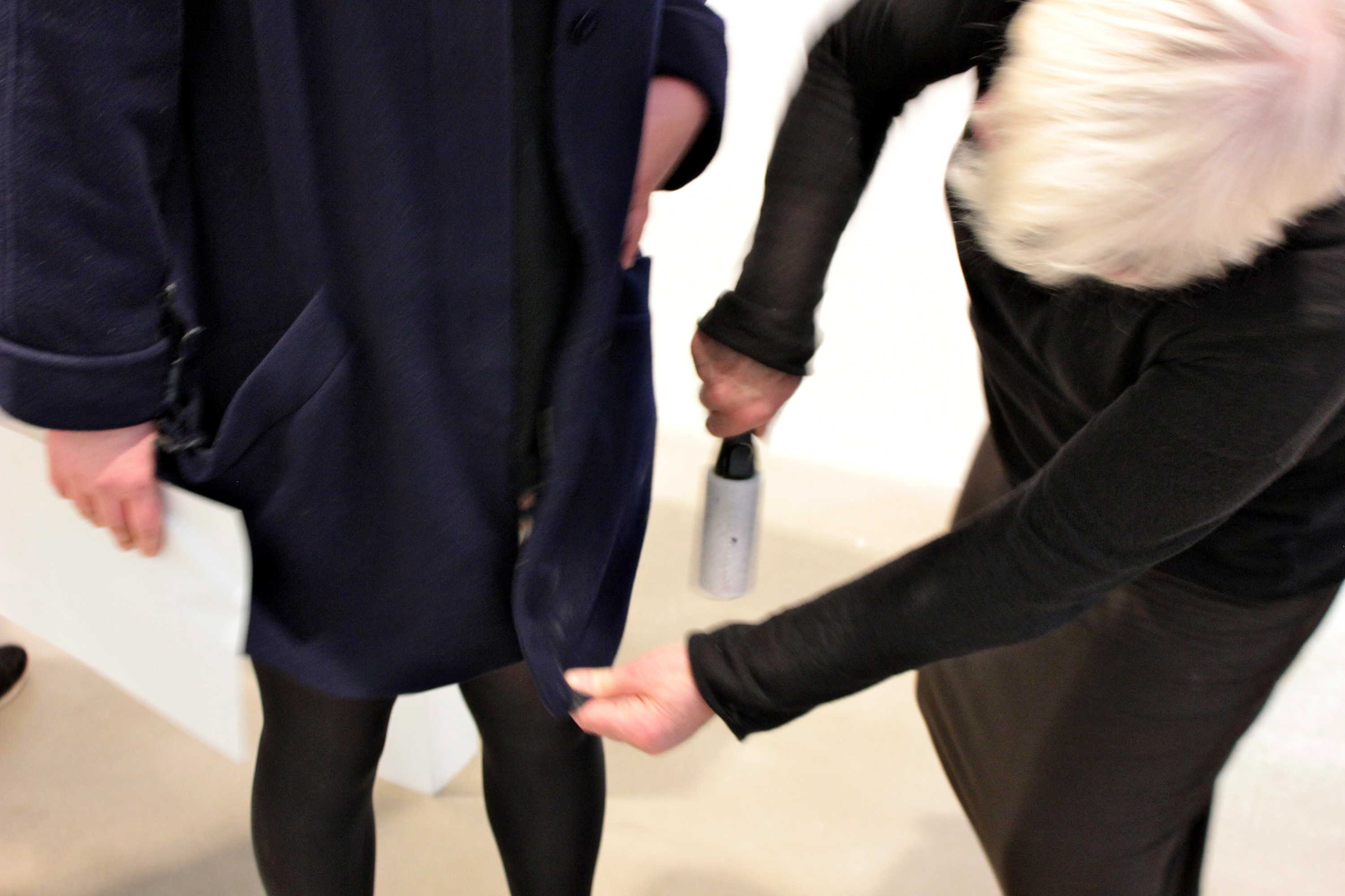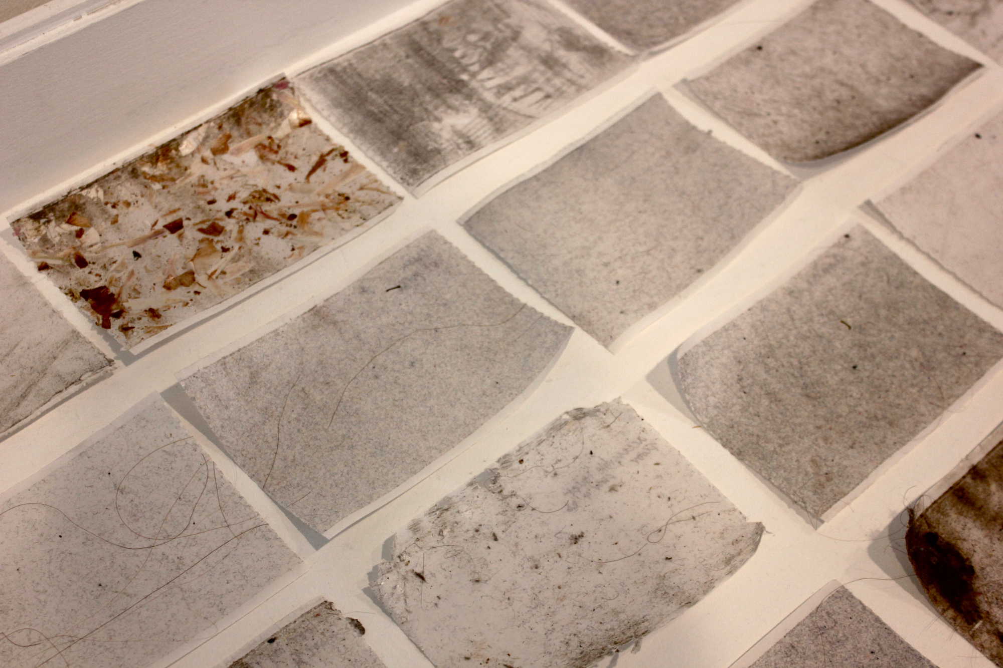 A low-key activity where I use a clothes lint roller to lift surface dust off walls, floors, people and objects using the peel-off sheets to create landscape/portraits of the event. I am intrigued by the way that drawings emerge as traces of encounters. Time and place are registered when those vestiges of events are deposited on a receptive surface, where every presence, in order to know itself as present, bears the trace of an absence which defines it.