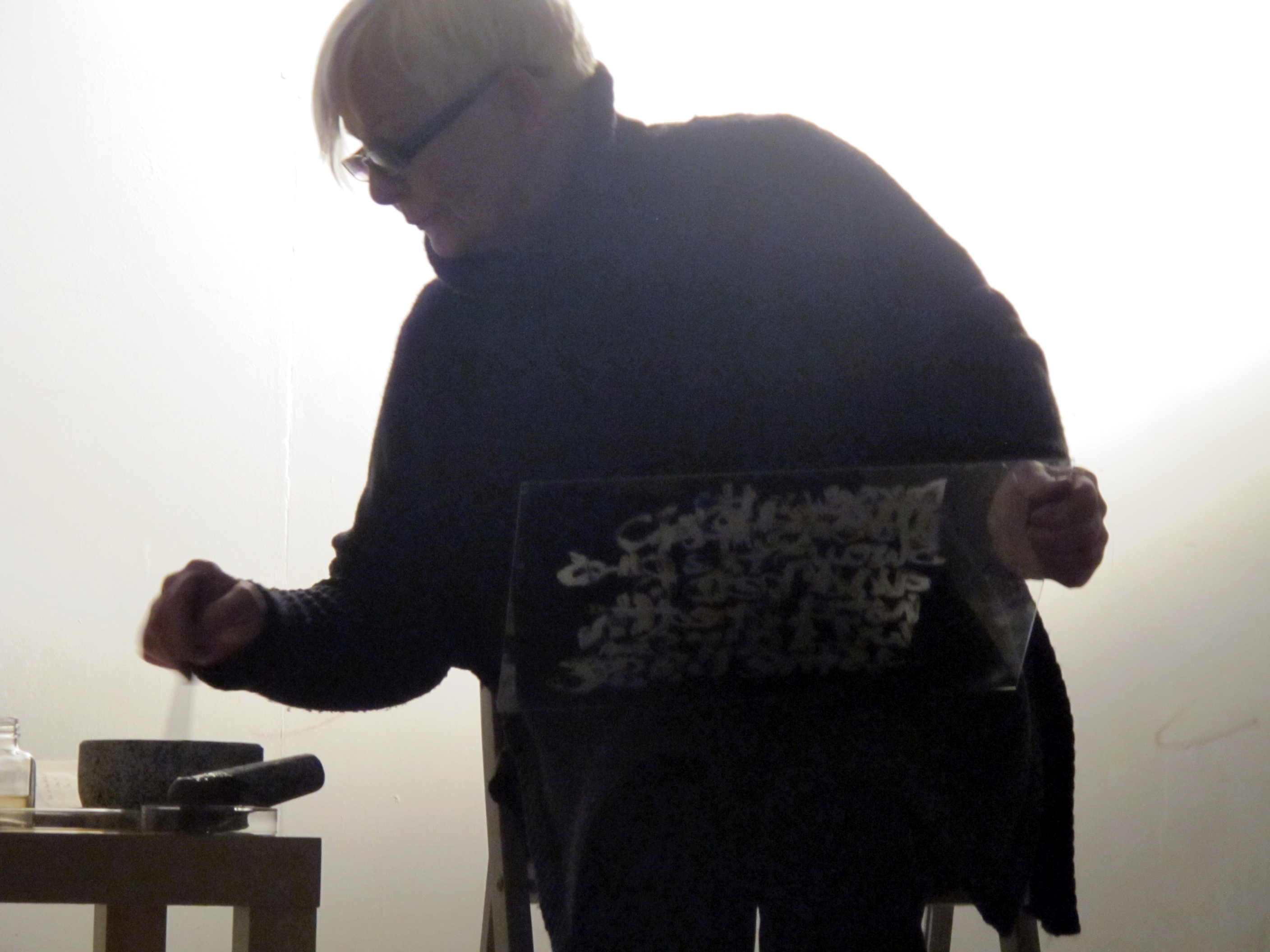 Through the act of mixing pigment and making marks, I appropriate text from the books and reconfigure my mother's notes as graphic and visceral memory traces.